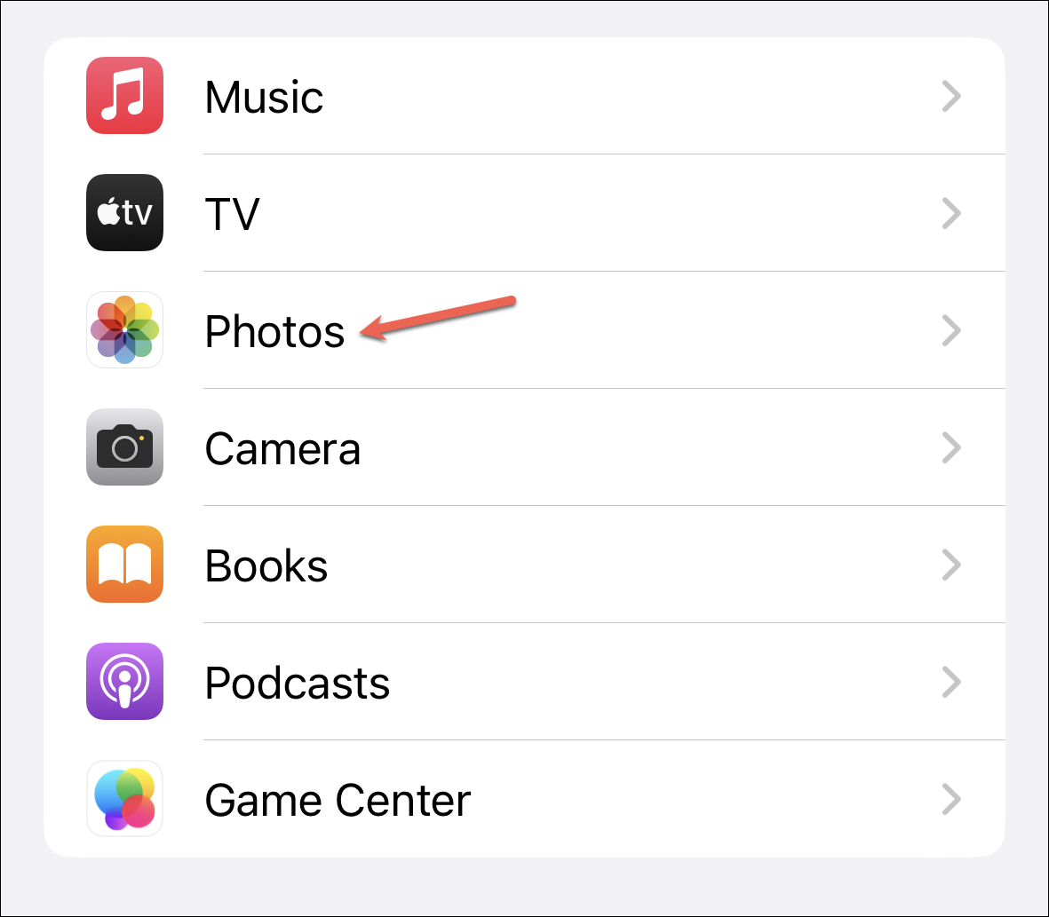 Now, navigate to ‘Photos’ from the Settings app.