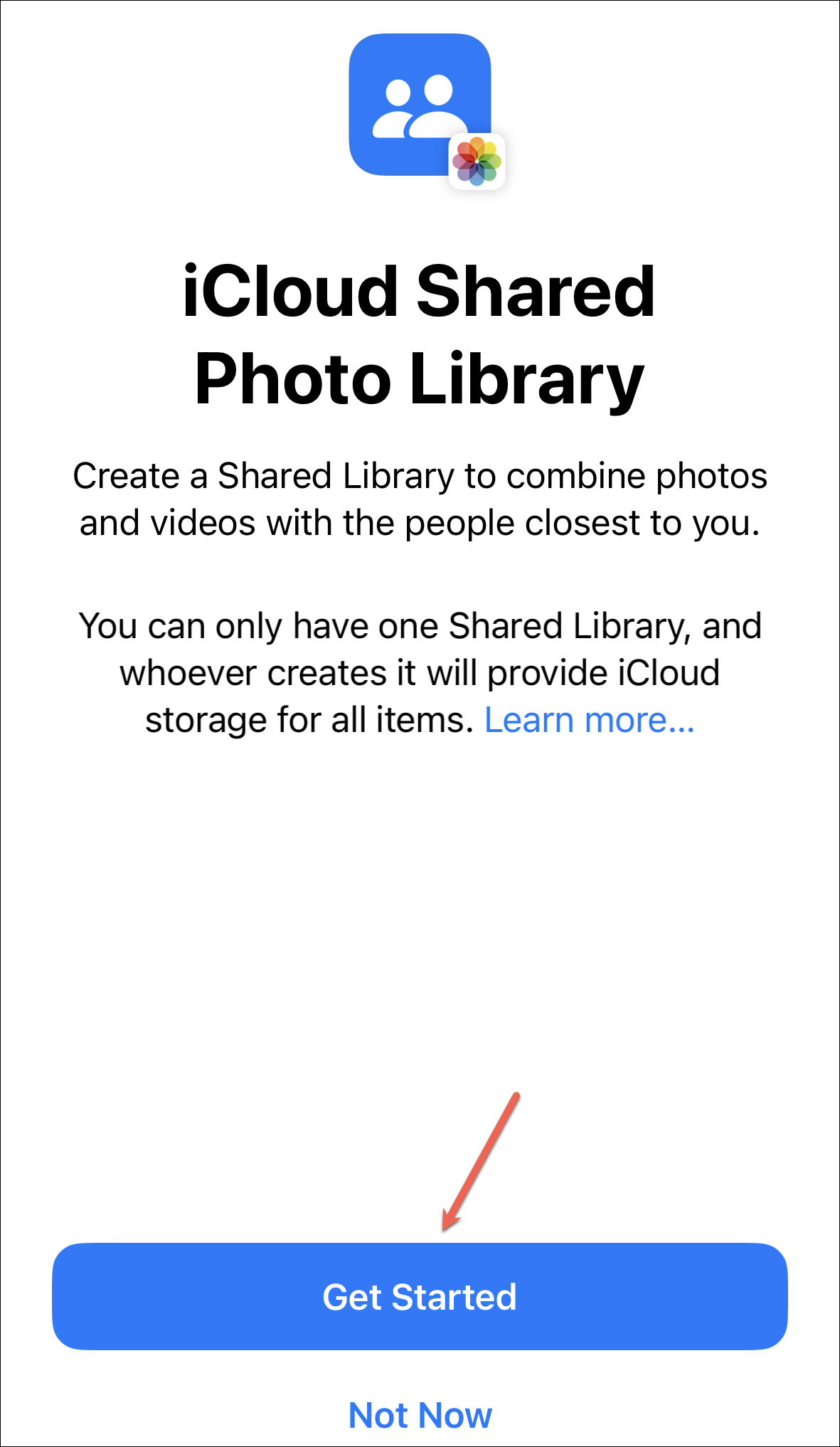 iCloud Shared Library is a separate library in the Photos app on your Apple device where you can share photos with up to five other friends or family members. iCloud Shared Library is separate from Family Sharing. You can invite participants other than the ones in your Family group. Or if you don’t have a family group, you don’t need to create one to use Shared Photo Library.