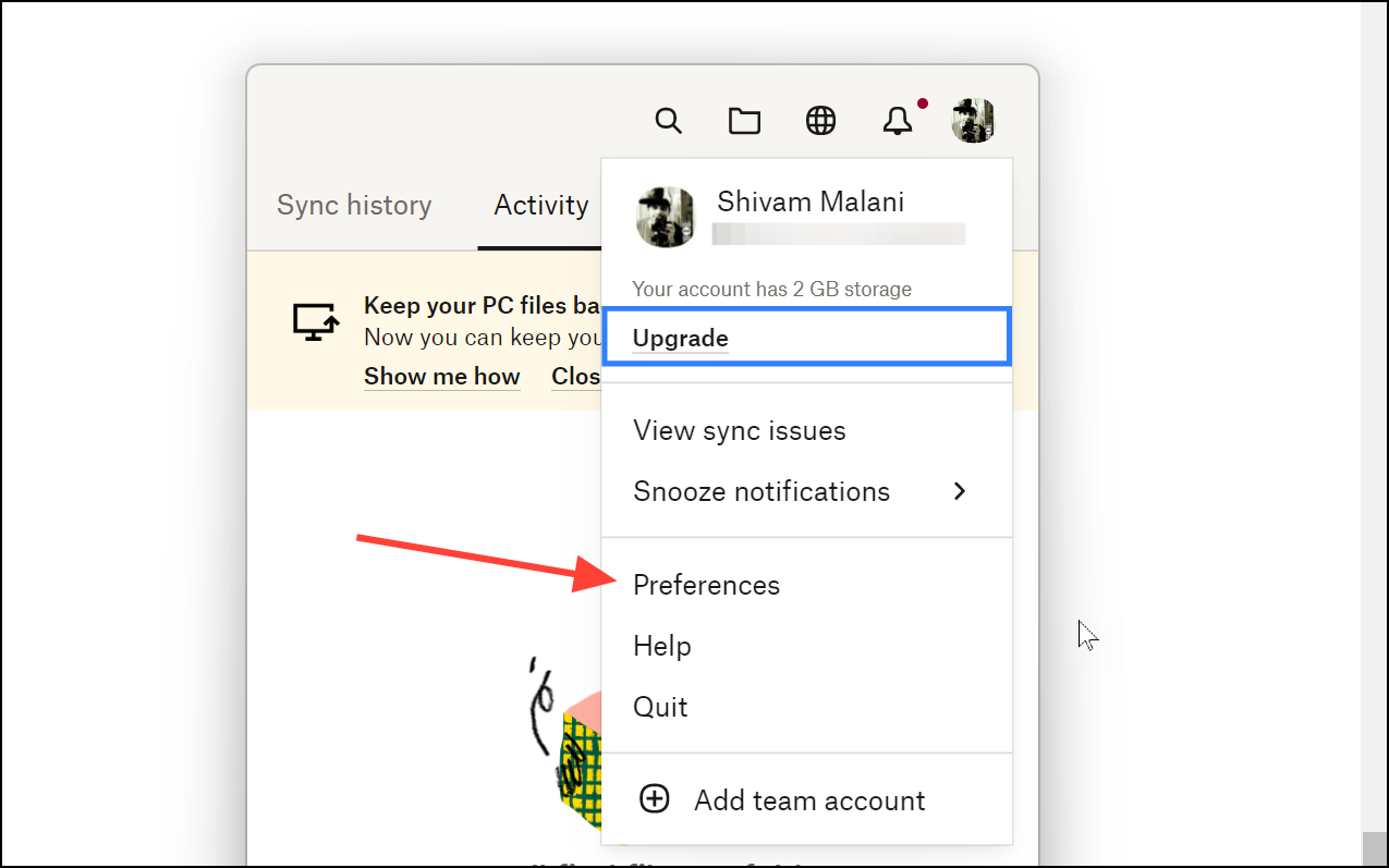 - Open the Dropbox app on your Windows PC.