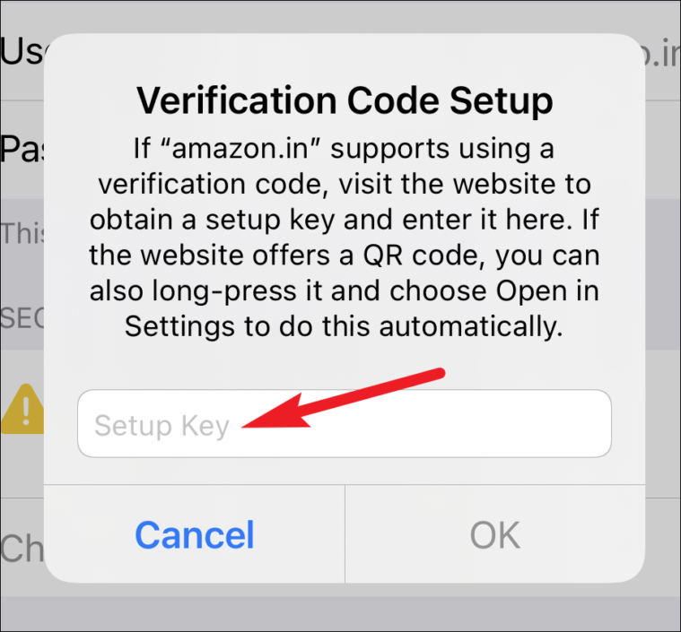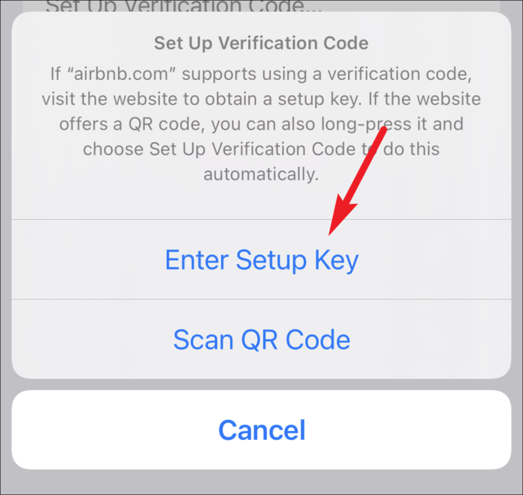 There are two ways to set up a verification code depending on the website you’re currently setting up for. You can either enter the Setup Key or scan a QR code. Tap the preferred option.