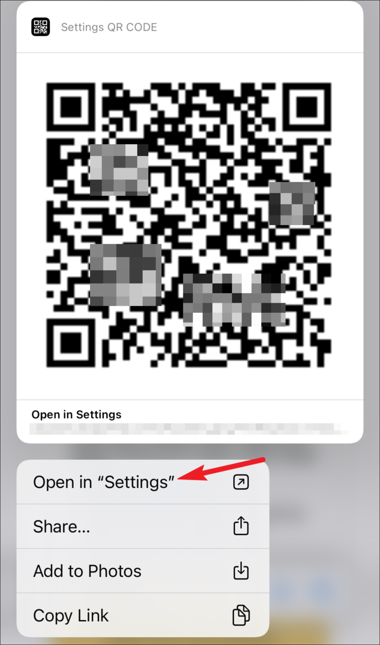 Tap and hold the QR code generated and tap ‘Open in Settings’.
