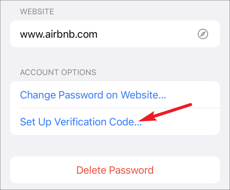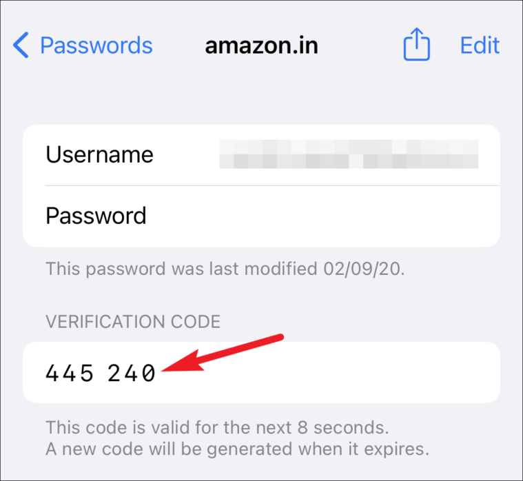 Then, on the Passwords screen for the website, you’ll find the verification codes displayed on the screen.