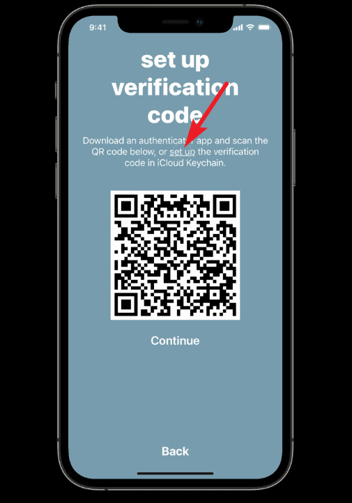 Go to the website you’re setting up 2FA for and generate the setup key or QR code. If you chose the Setup key, simply enter the key. For QR code, settings will open the camera to scan the code. The code will be set up after you enter the code generated by Apple’s authenticator on the website.