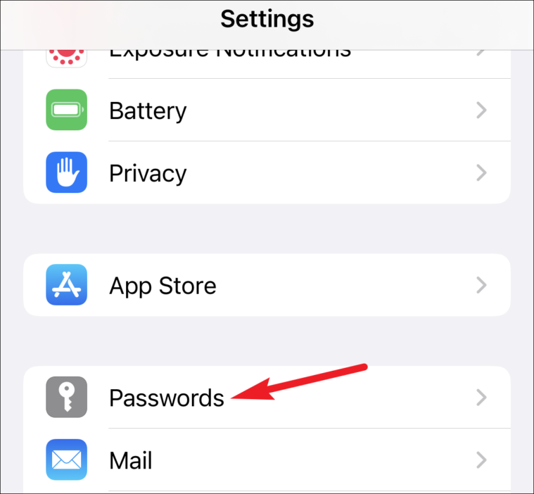 If a website offers Two-Factor authentication with TOTP, you can easily set it up on a device running iOS 15. Open the Settings on your iPhone and go to ‘Passwords’.
