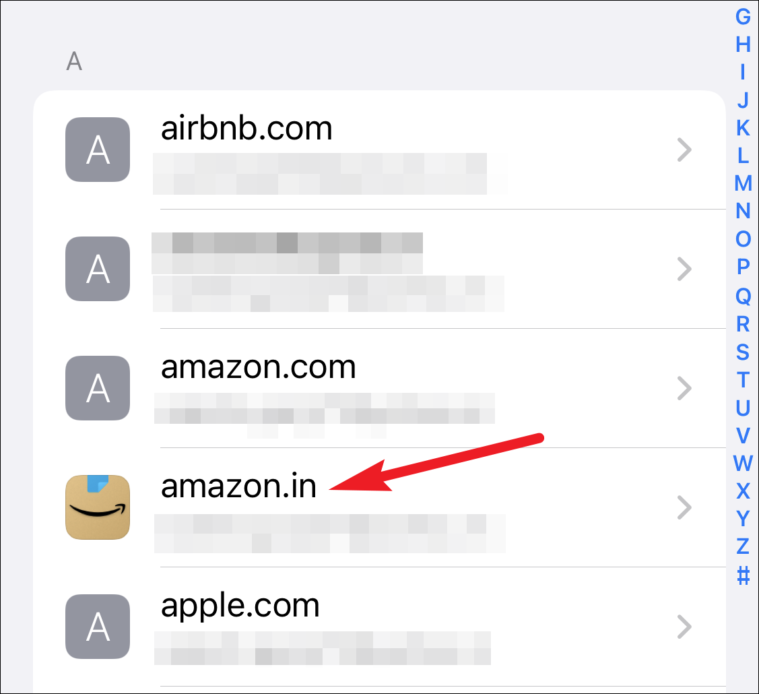 Opening ‘Passwords’ settings will require your Face ID, Touch ID, or Passcode to authenticate. Once in, you’ll see the list of all websites that you have stored with iCloud Keychain. Tap a website to open it.