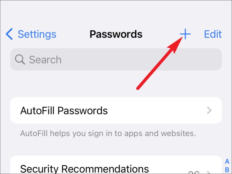 If the website isn’t saved in Passwords, tap the ‘+’ icon in the top-right corner to save it with iCloud Keychain. Then, open it.