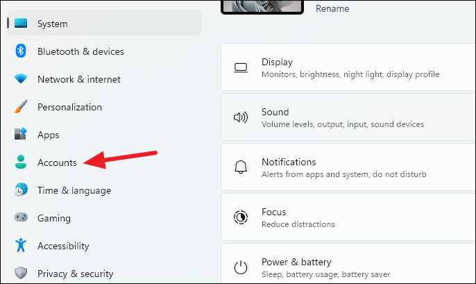 Step 2: After updating and restarting your PC, open Settings again and go to 'Accounts' from the left-hand menu.