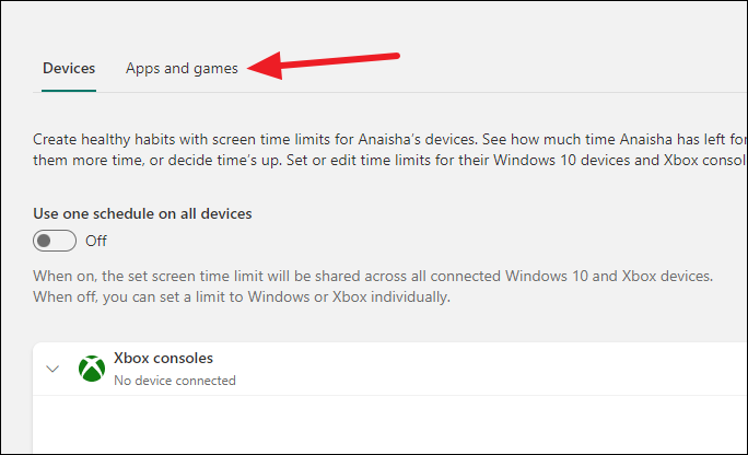 You can also set screen time limits for individual apps and games by switching to the 'Apps and games' tab in the screen time section.