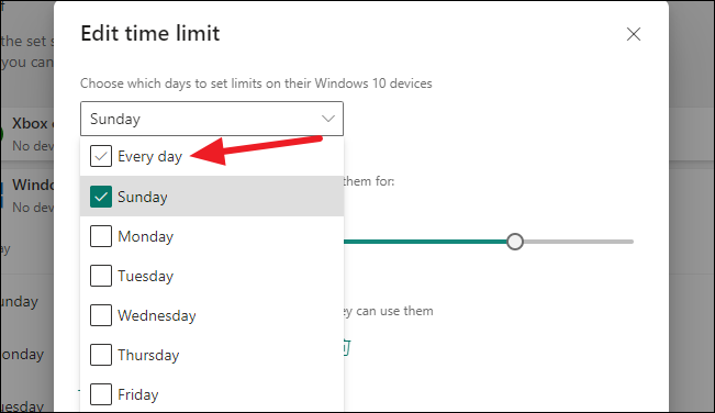 Step 4: Adjust the schedule by clicking on a day. You can set different schedules for each day or select 'Every day' to apply the same schedule throughout the week.