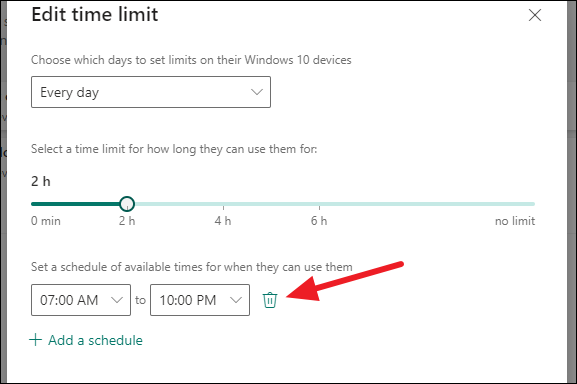 Step 5: Use the slider to set the total allowed time for device usage. You can also define specific time periods during which device use is permitted. If you prefer not to set specific time frames, delete them so your child can use the device at any time within the daily limit.