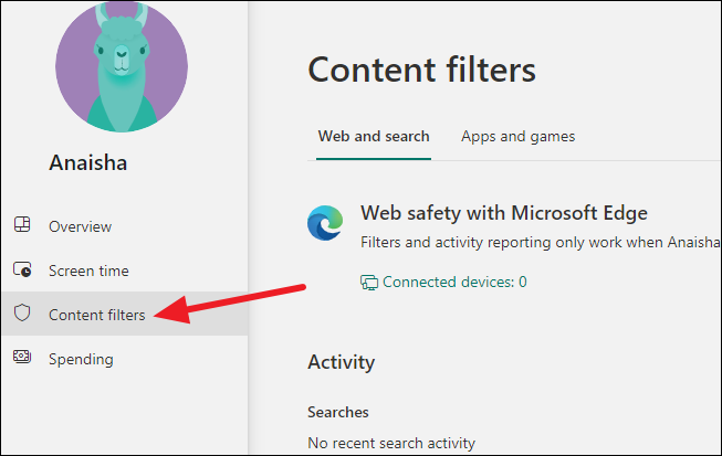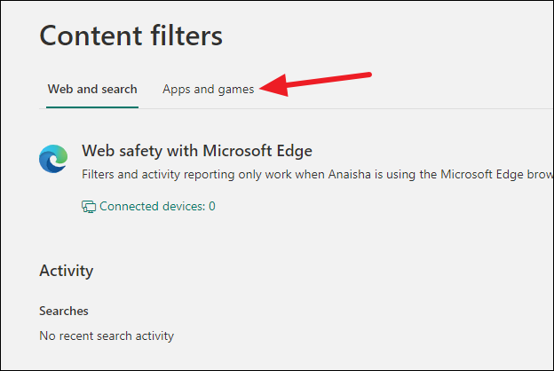 Step 4: To manage app and game restrictions, switch to the 'Apps and games' tab within the content filters section.