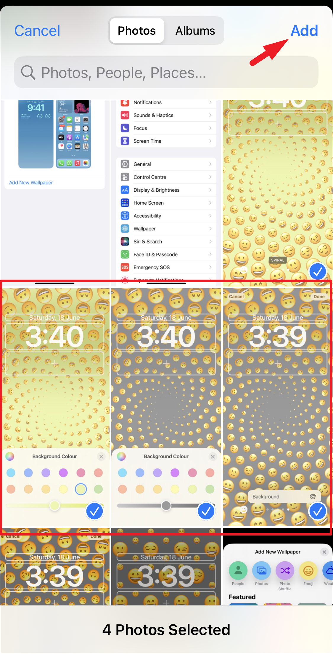 From your photo gallery, tap on each photo thumbnail you want to include in your shuffled wallpapers to select it. You can select up to 50 pictures from the gallery. Once selected, tap on the ‘Add’ button from the top right corner.