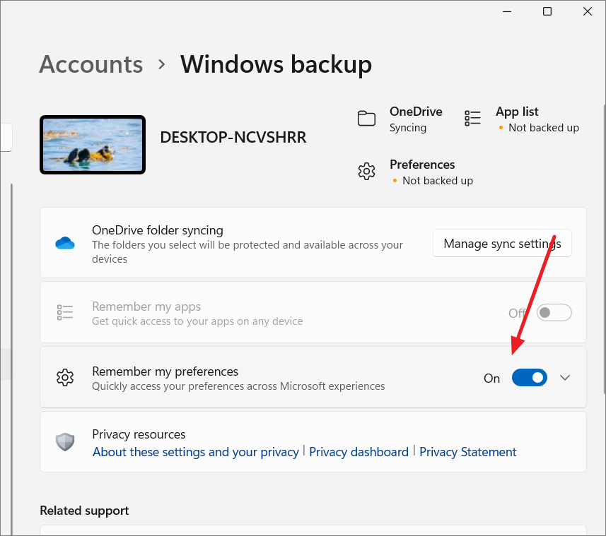 Note that desktop applications not available through the Microsoft Store and Android apps installed on your computer are not included in the backup. This means you'll need to reinstall these specific apps manually after restoring your backup.