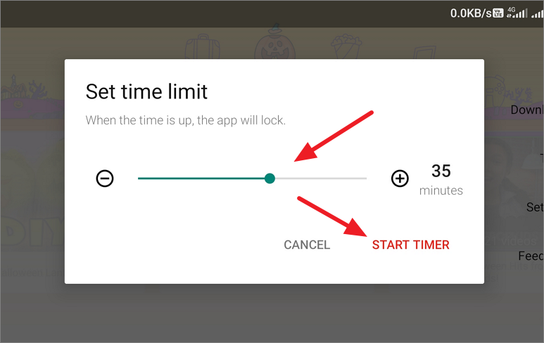 - Use the slider to set the maximum allowed time for watching videos and press the 'START TIMER' button.