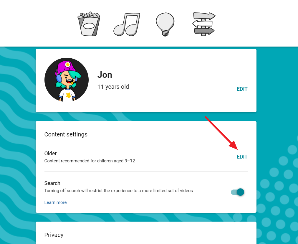 After creating the profile, you can always manage your child's content settings, and privacy settings, block unwanted videos, set up a timer, and set up a passcode to protect profile settings.