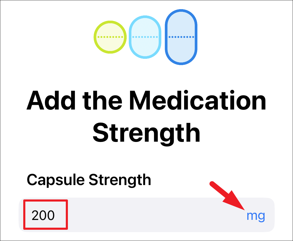 Then, you can enter the strength details of the medicine. To do so, first, enter the numerical value as mentioned on the packaging of the medicine in the text box and then choose the unit by tapping on the ‘Choose Unit’ button. This will bring an overlay window to your screen. After that, select the unit of medicine strength as mentioned on the packaging.