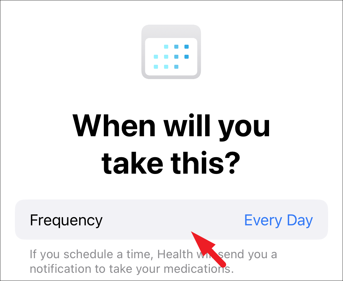 After that, you will have to set up the schedule for taking the medication. To select a frequency, tap on the ‘Frequency’ option to continue. This will bring an overlay window to your screen.