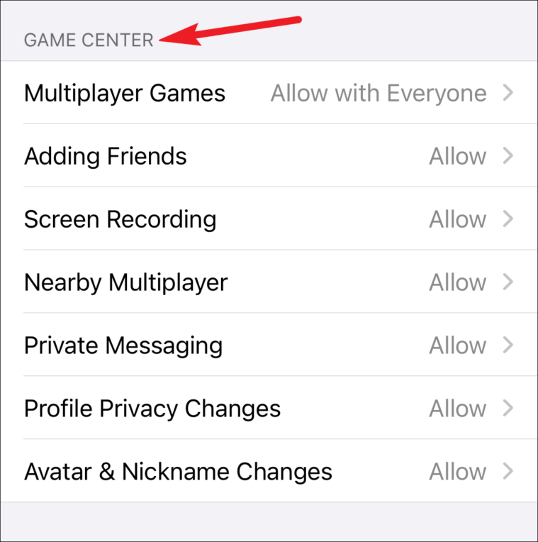 Entertainment and gaming are a huge part of what children use the devices for. You can also restrict Game Center features like private messaging, playing games with strangers, etc., on both your iPhone and iPad. Open the Content Restrictions screen and scroll down to the very bottom. There, you’ll find the options for restricting access to the Game Center.