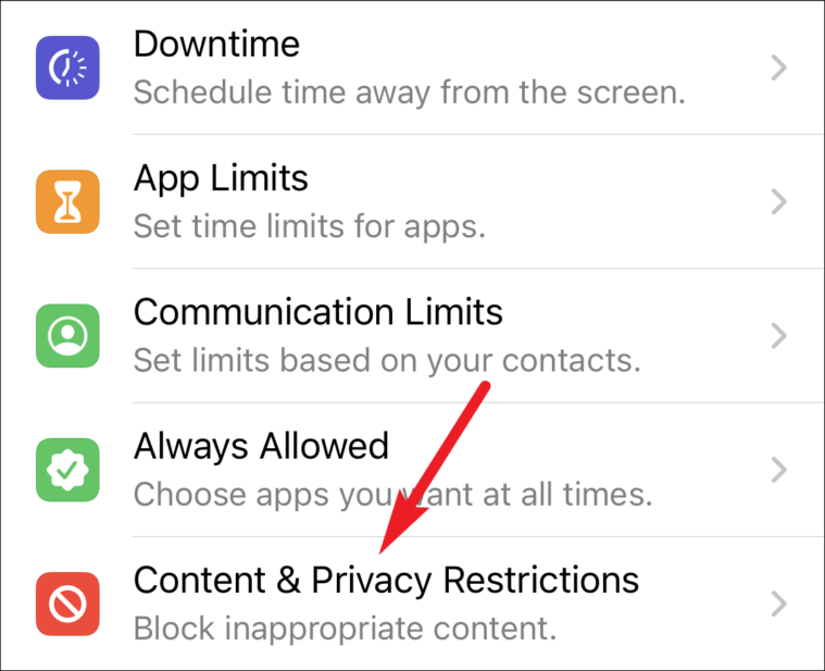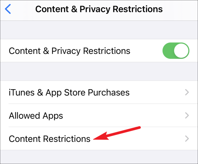 Now, tap on ‘Content & Privacy Restrictions’.
