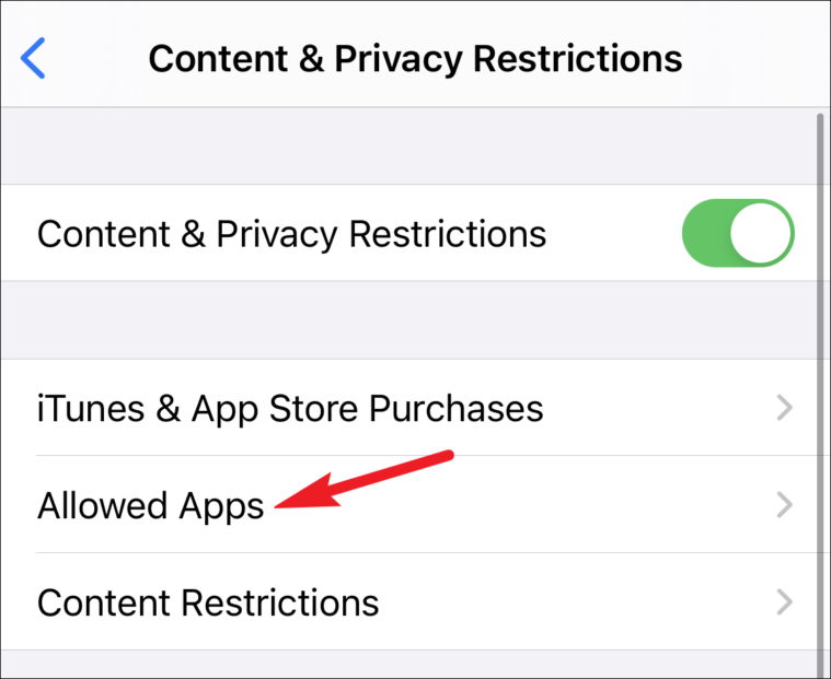 From the Content & Privacy Restrictions screen, tap on ‘Allowed Apps’.