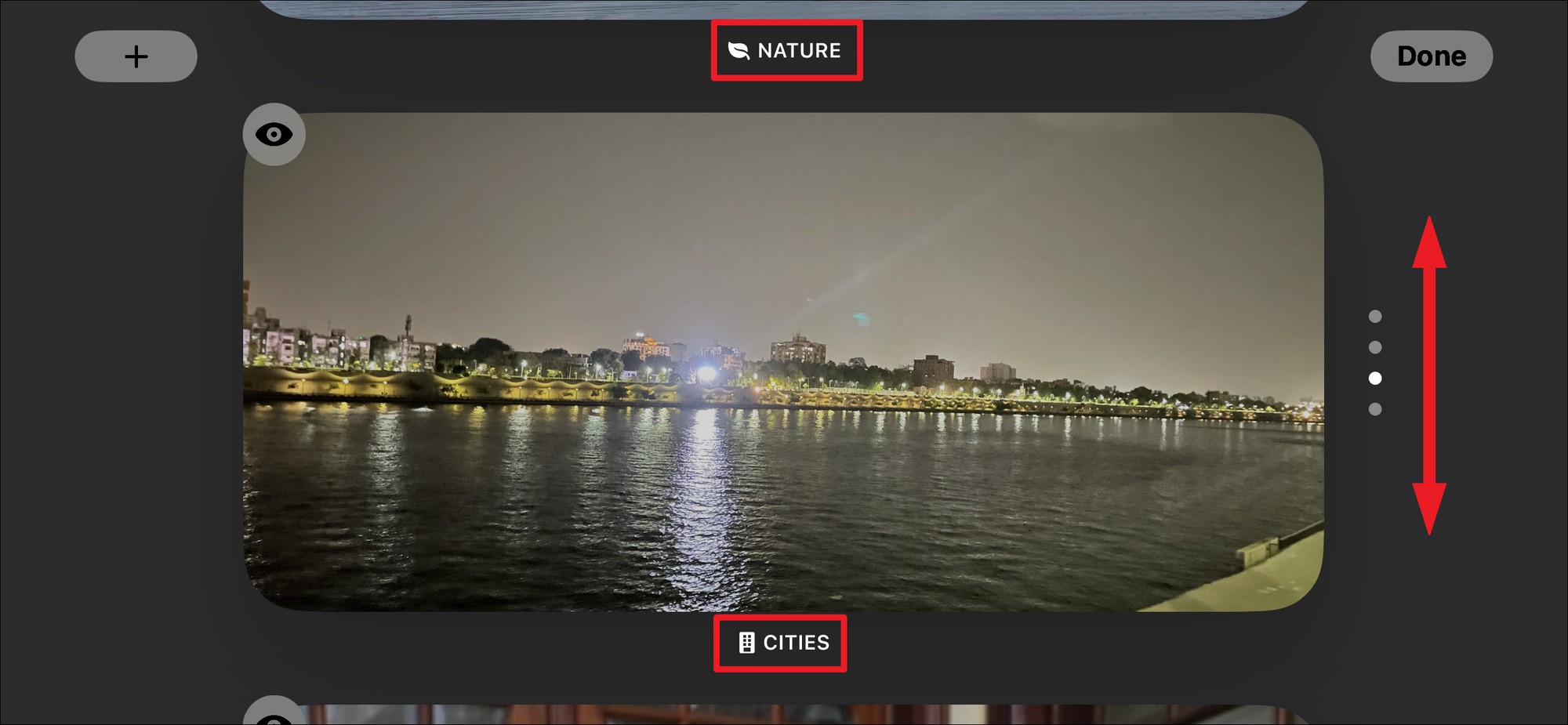 The Photos Layout automatically curates collections of pictures and lets you display them category wise such as 'Featured', 'Nature', 'Cities', and 'People'. However, there can be more/fewer depending on the photographs present in your gallery.
