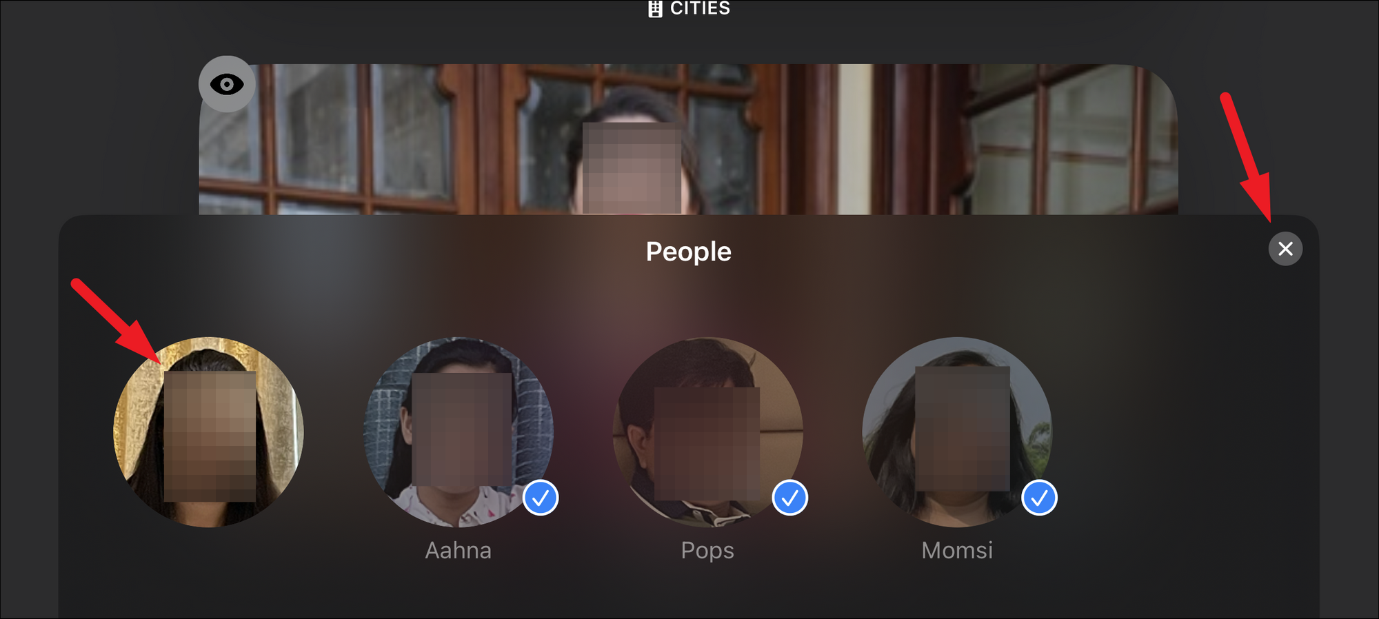 - Then, tap on the picture of people you wish to exclude. Tap on 'X' to close the window and save changes.