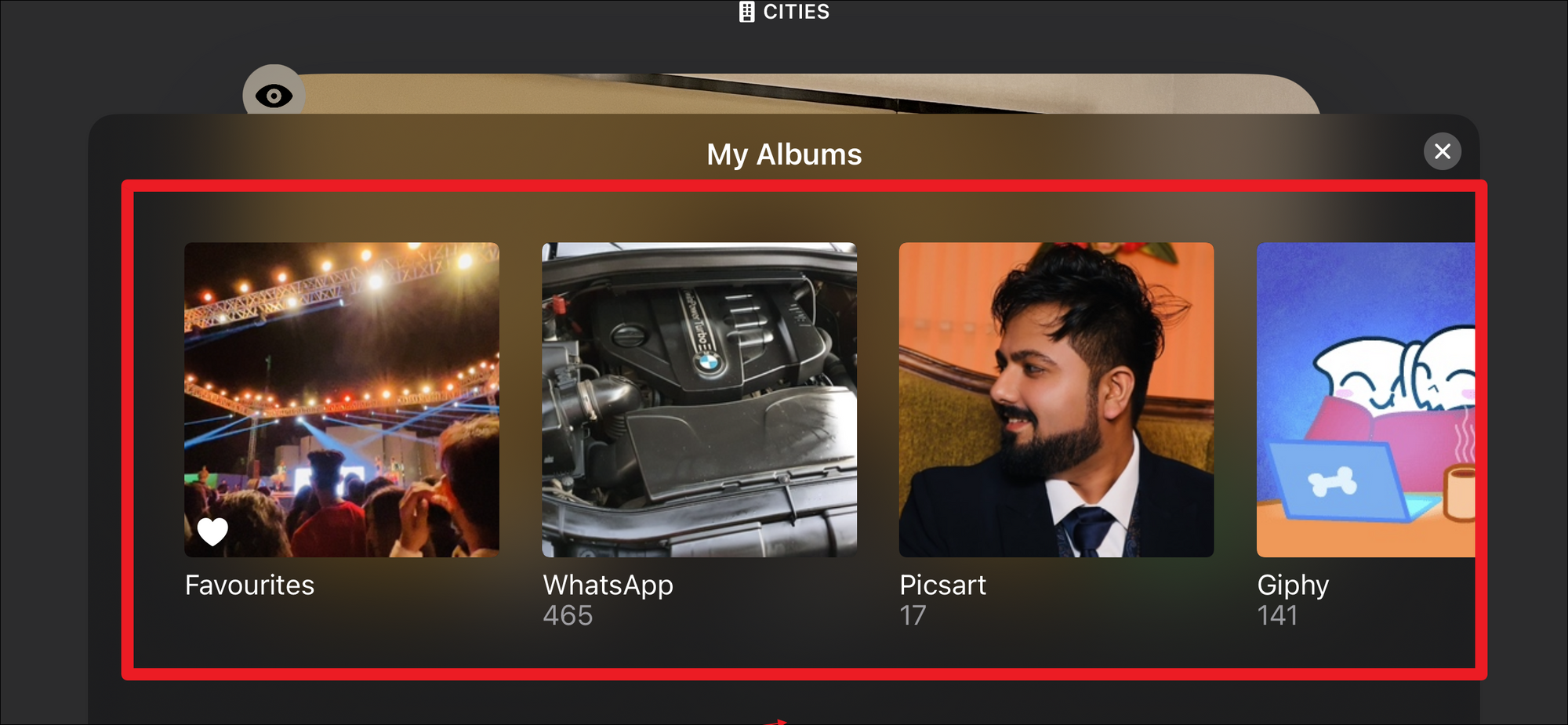 - All albums in your Photo gallery will be displayed in a floating window. Tap on any to select.