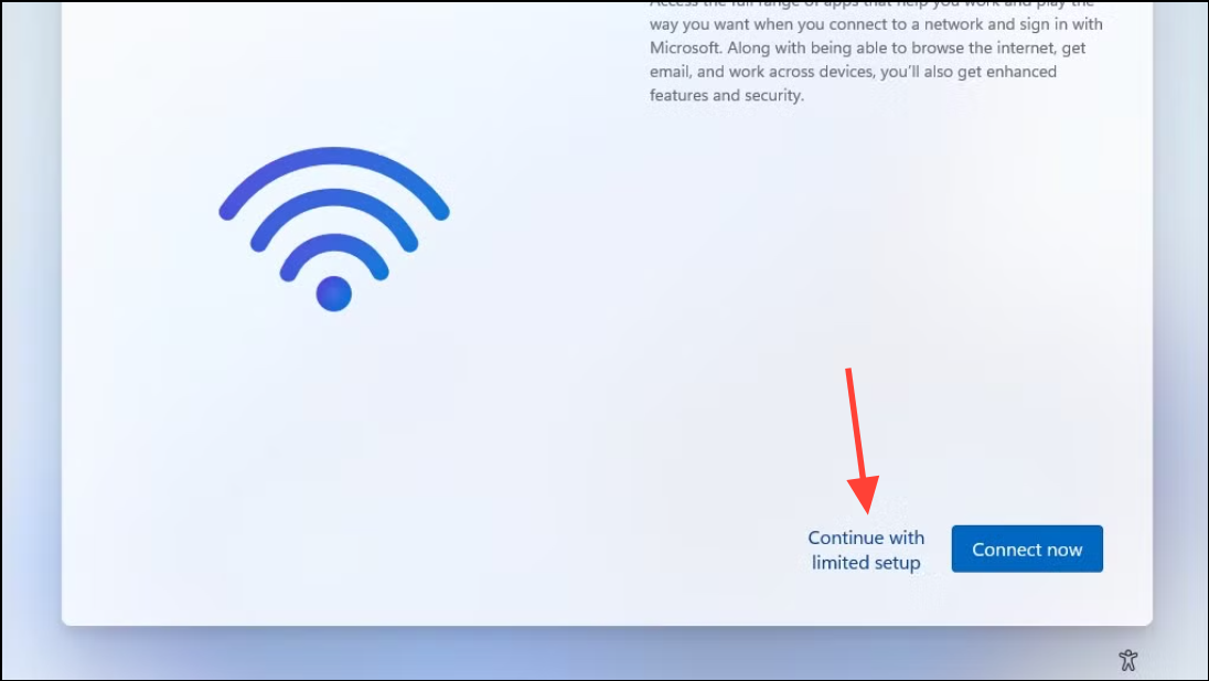 Step 5: Next, select "Continue with limited setup" if prompted. Windows will now allow you to create a local account. Enter your desired username, set a password, configure security questions, and finish the setup process.