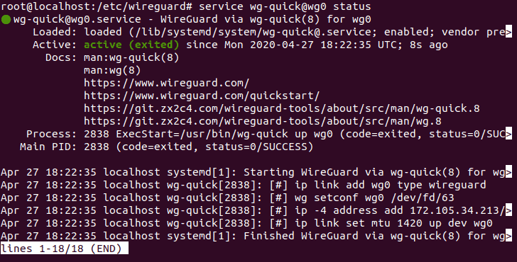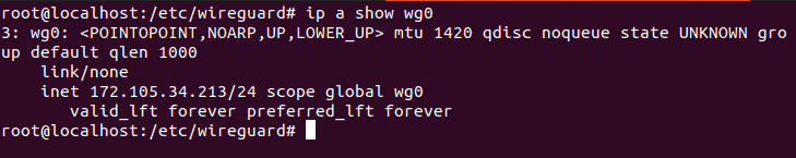 Step 4: Confirm that the wg0 interface is active: