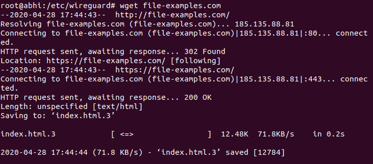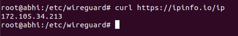 The output should display the server's public IP address, indicating that your internet traffic is being routed through the VPN server.