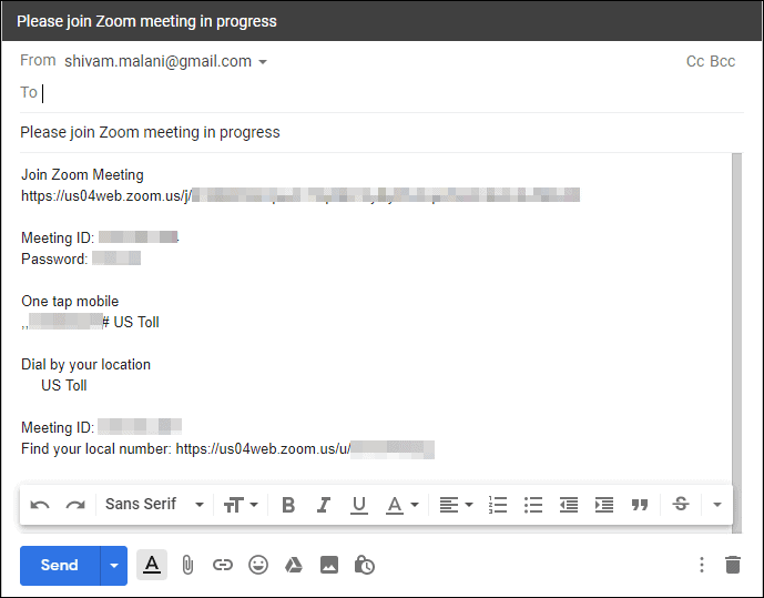 Step 4: In the 'To' field of the email, enter the email addresses of the people you want to invite. You can add multiple recipients to invite several participants at once.