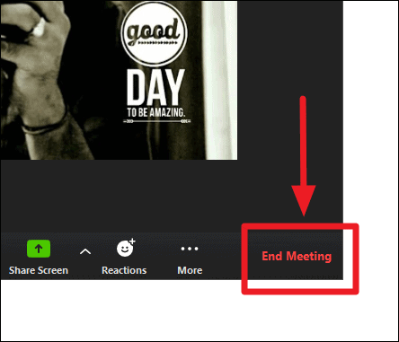 To end or leave the meeting, click on the 'End Meeting' button located at the bottom right corner of the meeting window.