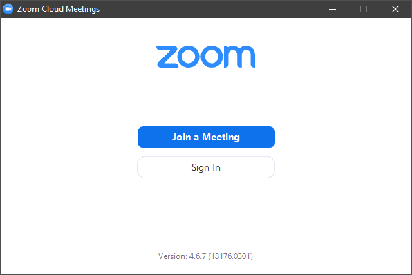 Upon opening the Zoom app, you'll see a simple interface with two options: 'Join a Meeting' and 'Sign In'.