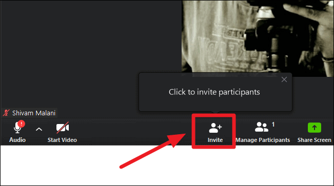 Step 1: To invite participants, click on the 'Invite' button located at the bottom of the meeting window.