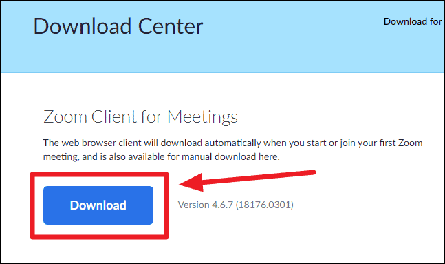 Step 1: Visit the Zoom Download Center on your computer. Under the 'Zoom Client for Meetings' section, click the 'Download' button to obtain the installer file.
