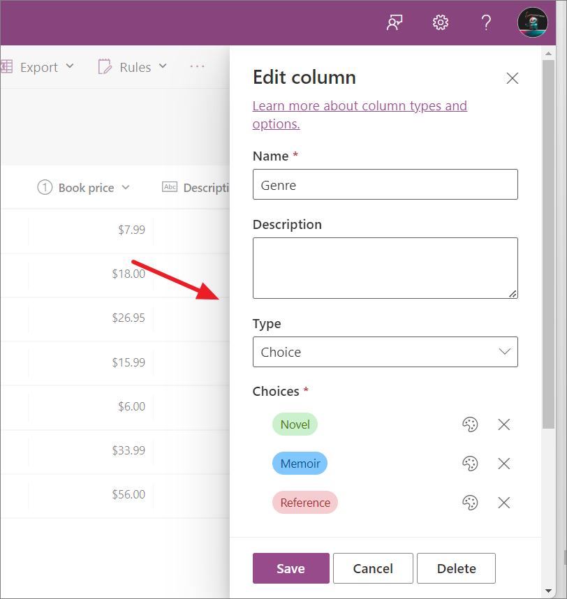 Changing Column Settings in Microsoft Lists