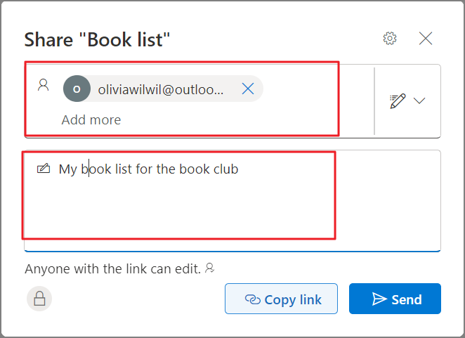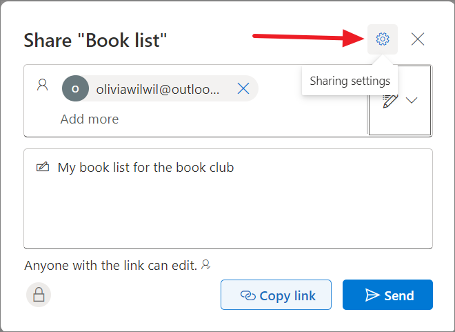 - Finally, click 'Send'. You also copy the link and share it with others through email or message. Selecting 'Copy link' will automatically copy the link to your clipboard with the sharing settings selected.