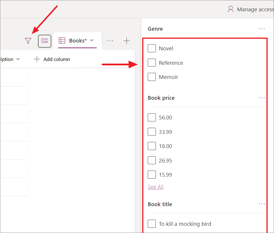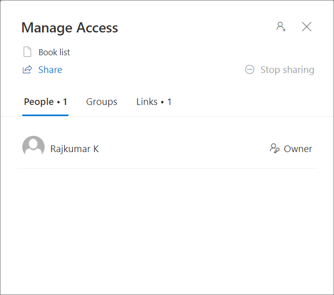- To manage access to the shared list, click the 'Manage access' button at the top right corner.