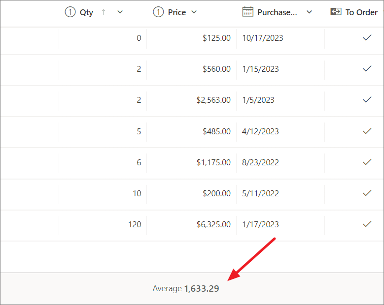 - Average Rating: Display the average rating of an item based on ratings entered in other columns.