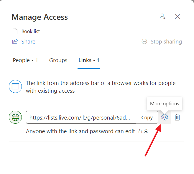 - To stop sharing a list, go to the 'Links' section and delete the link that you want to stop sharing. If you want to stop sharing a list with a particular user, go to the 'People' section and stop sharing with the user who has direct access.