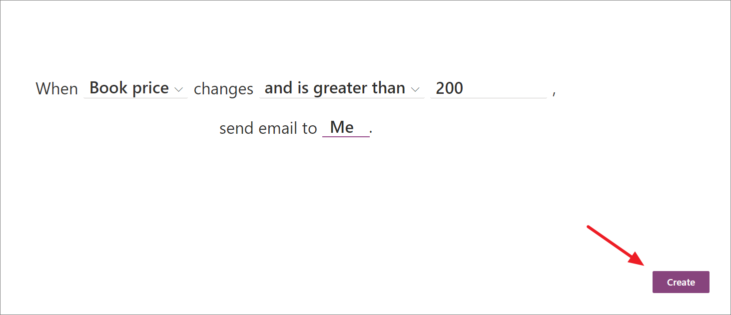 As of now, you only have the option to send notifications when data changes, but in the future you may have to perform various actions when conditions are met. To create a rule, simply choose a condition that triggers the rule and the action that the rule will take.