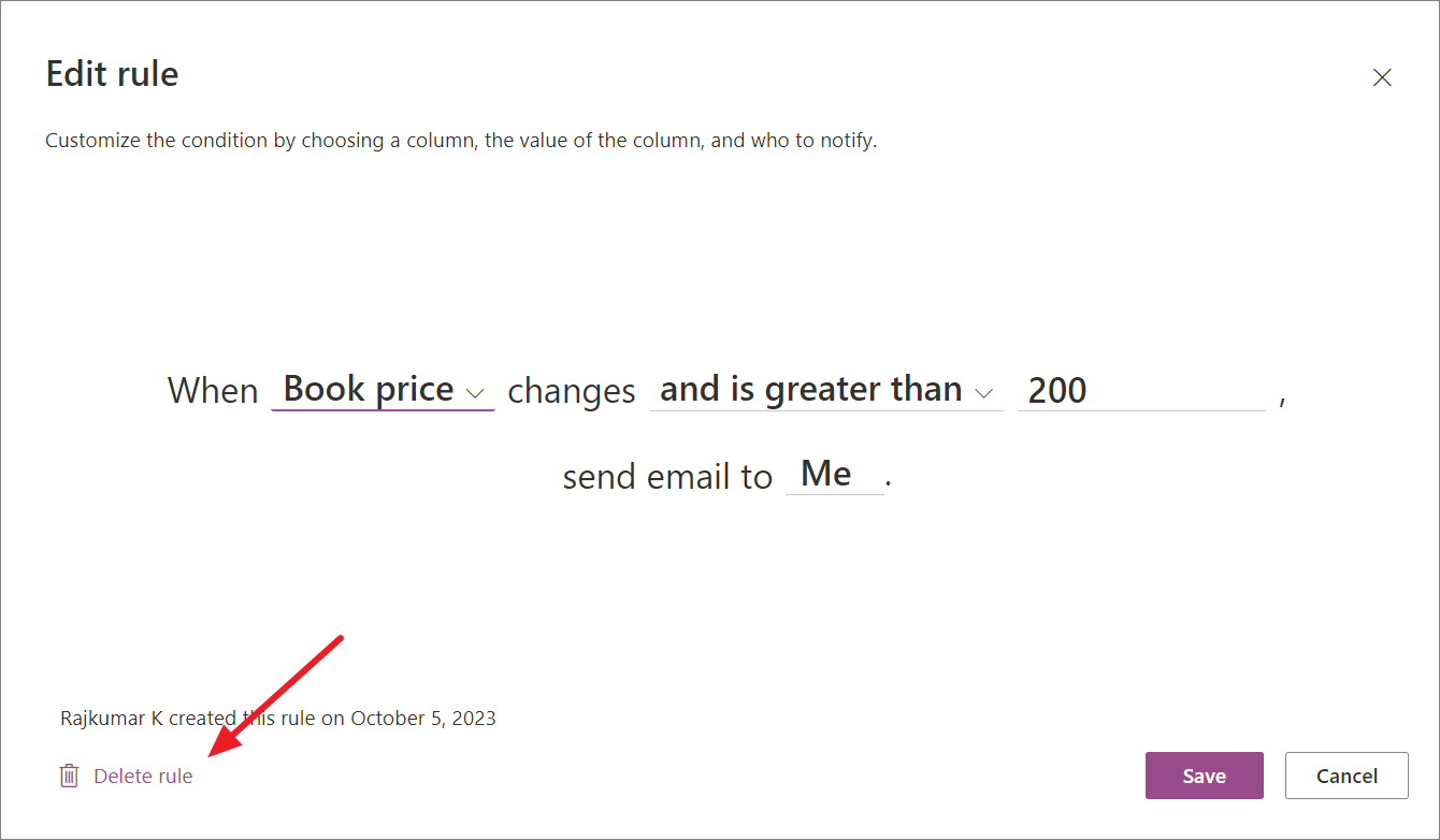 - To remove the rule, click the 'Delete rule' option at the bottom left corner of the Edit rule window.