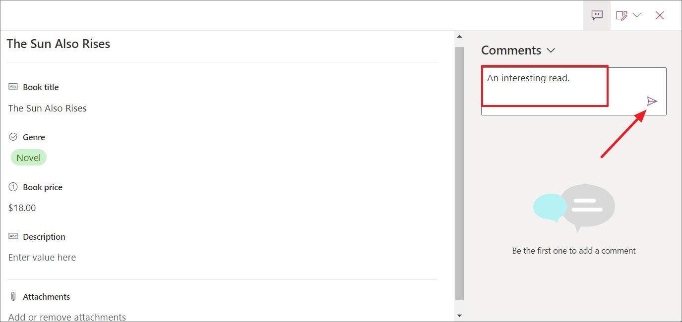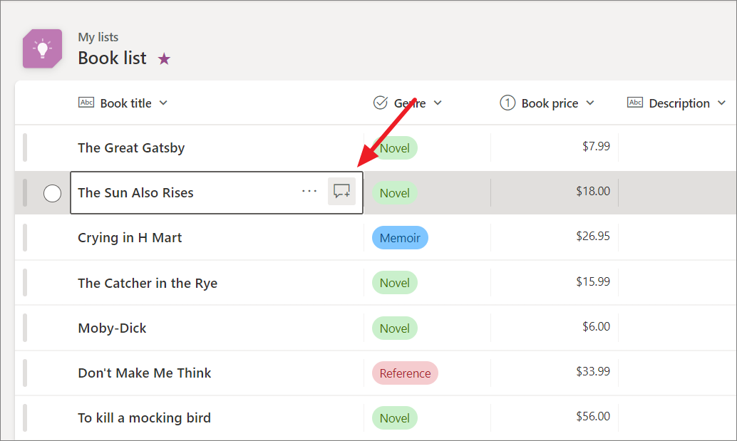 - Open the list you want to add a comment to.