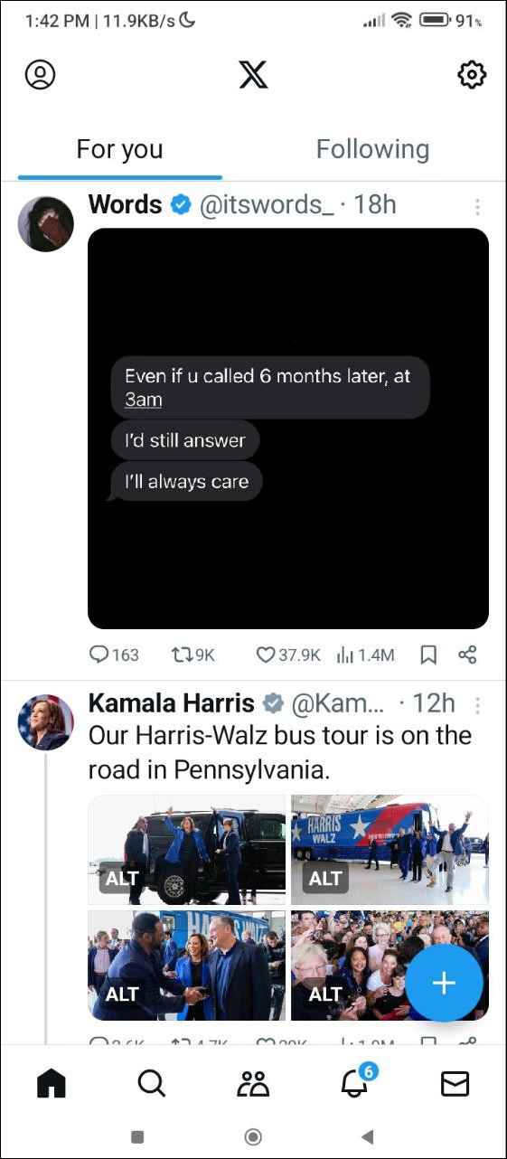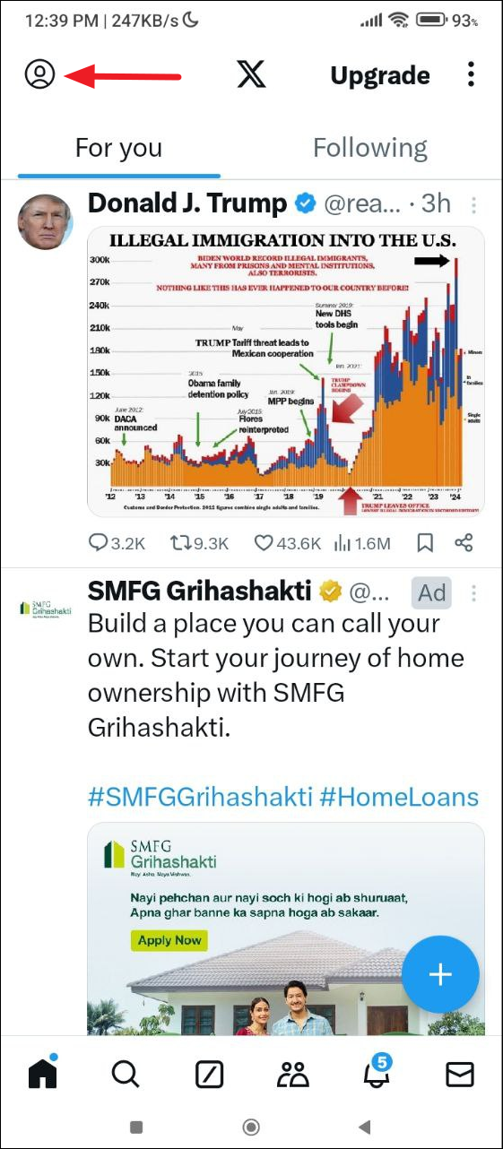 - Open the X app on your Android device and then tap on the user icon on the top left.