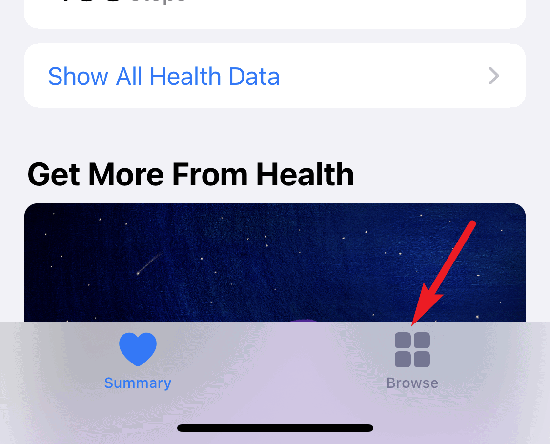 To set up a sleep schedule, open the Health app on your iPhone, and tap on the ‘Browse’ tab at the bottom right corner of the screen.