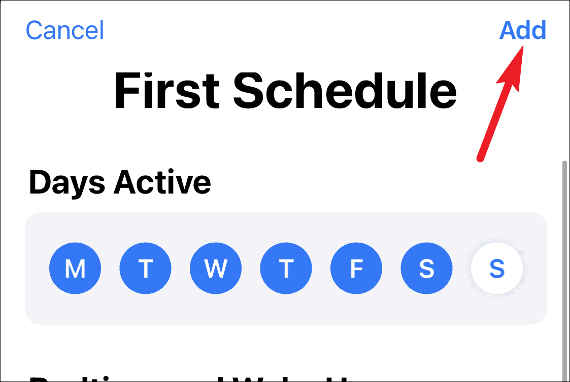After configuring all the settings, tap ‘Add’ on the upper right corner of the screen to save the schedule.
