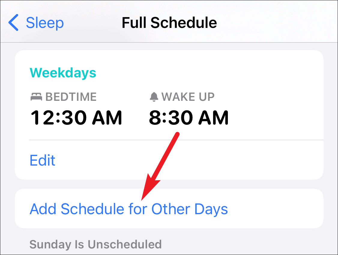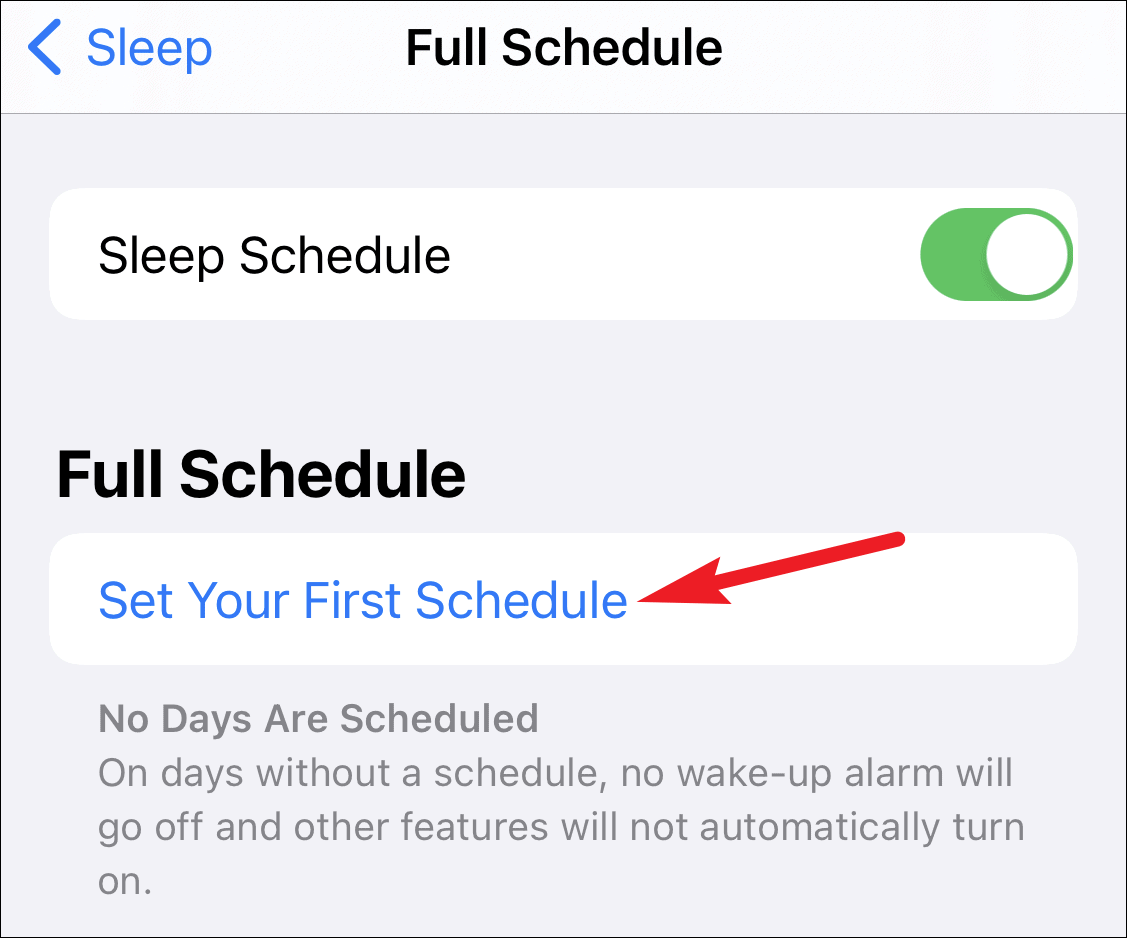 Now tap ‘Sleep Schedule’ under Your Schedule to open it.