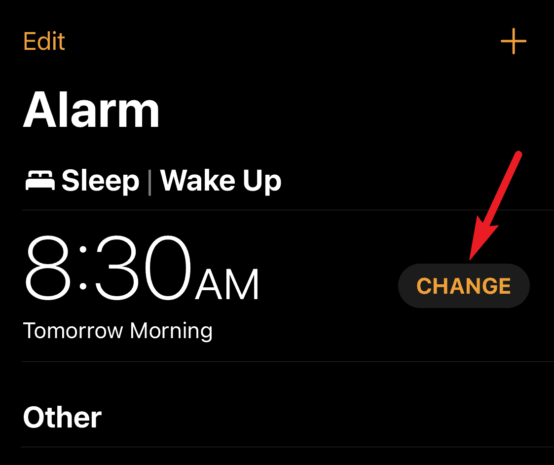 You can also edit the alarm for just a single day whenever you want from the Health app or from the Alarm tab in the Clock app itself. Go to the Alarm tab in the Clock app. The Sleep alarm will appear on top of the other alarms; tap on ‘Change’ next to the alarm to change it. By default, the changes in the alarm will be only for the next day, and it won’t affect the schedule settings.
