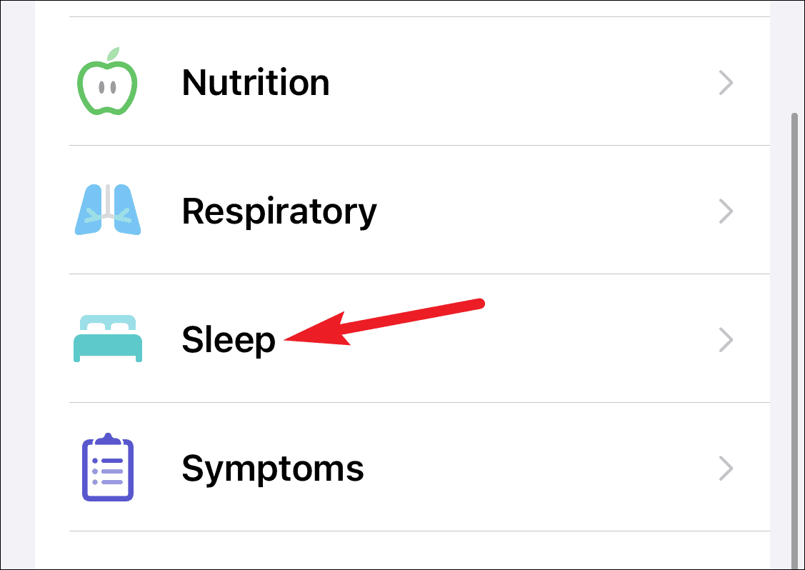 Scroll down and open ‘Sleep’ from the options on the screen. For users setting it up for the first time, swipe up and tap the ‘Get Started’ button. Then, set the sleep goal before you can set up a sleep schedule.