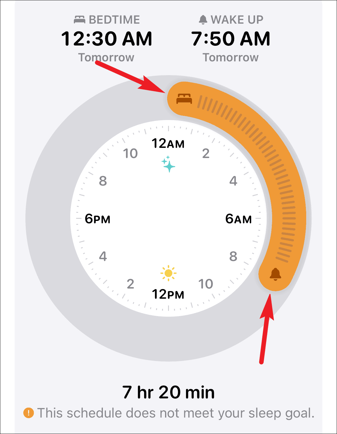 And the length of the block represents the duration. When the duration is less than your sleep goal, the block turns orange. Drag just one end of the block to extend the time.